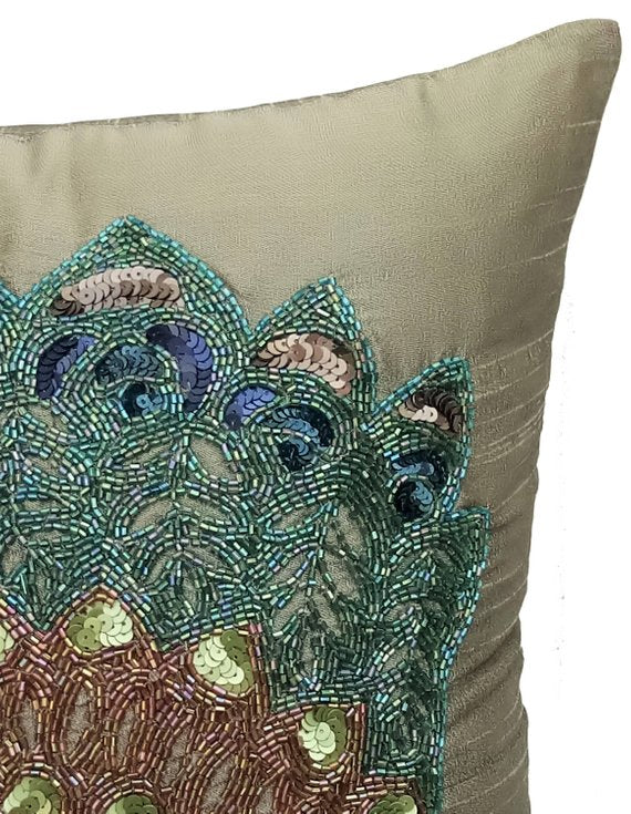 We have the perfect accessory that can help add an air of creativity to your interiors. The Dancing Peacock features a beautiful peacock made from carefully placed beads and sequins. Our craftsmen have meticulously hand sewed every bead and sequin on this chic euro sham, so it will surely get noticed by your guests. | Royal designs are worthy of the most luxurious fabrics, like art silk. And the decorative euro sham is therefore made from excellent quality art silk, sequins, and beads. We offer this stunning euro sham in 8 different sizes and 3 rich colors. It comes with a hidden flap covered zipper for ease of use. |