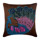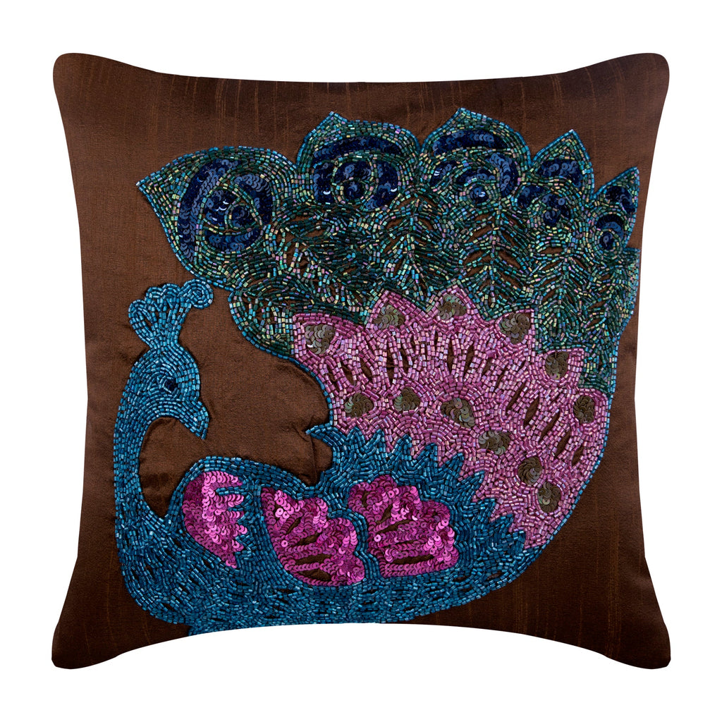 Fabric: Art Silk Material Used: Beads Fabric Color: Brown Pattern: Birds Style: Traditional Back of the cover: Plain Brown Art Silk Fabric For Insert Removal: Concealed flap covered zipper on the back for easy insertion and removal of inserts |