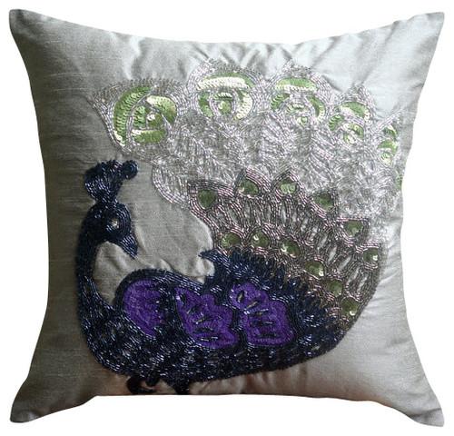We have the perfect accessory that can help add an air of creativity to your interiors. The Dancing Peacock features a beautiful peacock made from carefully placed beads and sequins. Our craftsmen have meticulously hand sewed every bead and sequin on this chic pillow cover, so it will surely get noticed by your guests. | Royal designs are worthy of the most luxurious fabrics, like art silk. And the throw pillow cover is therefore made from excellent quality art silk, sequins, and beads. We offer this stunning pillow cover in 8 different sizes and 3 rich colors. It comes with a hidden flap covered zipper for ease of use. |