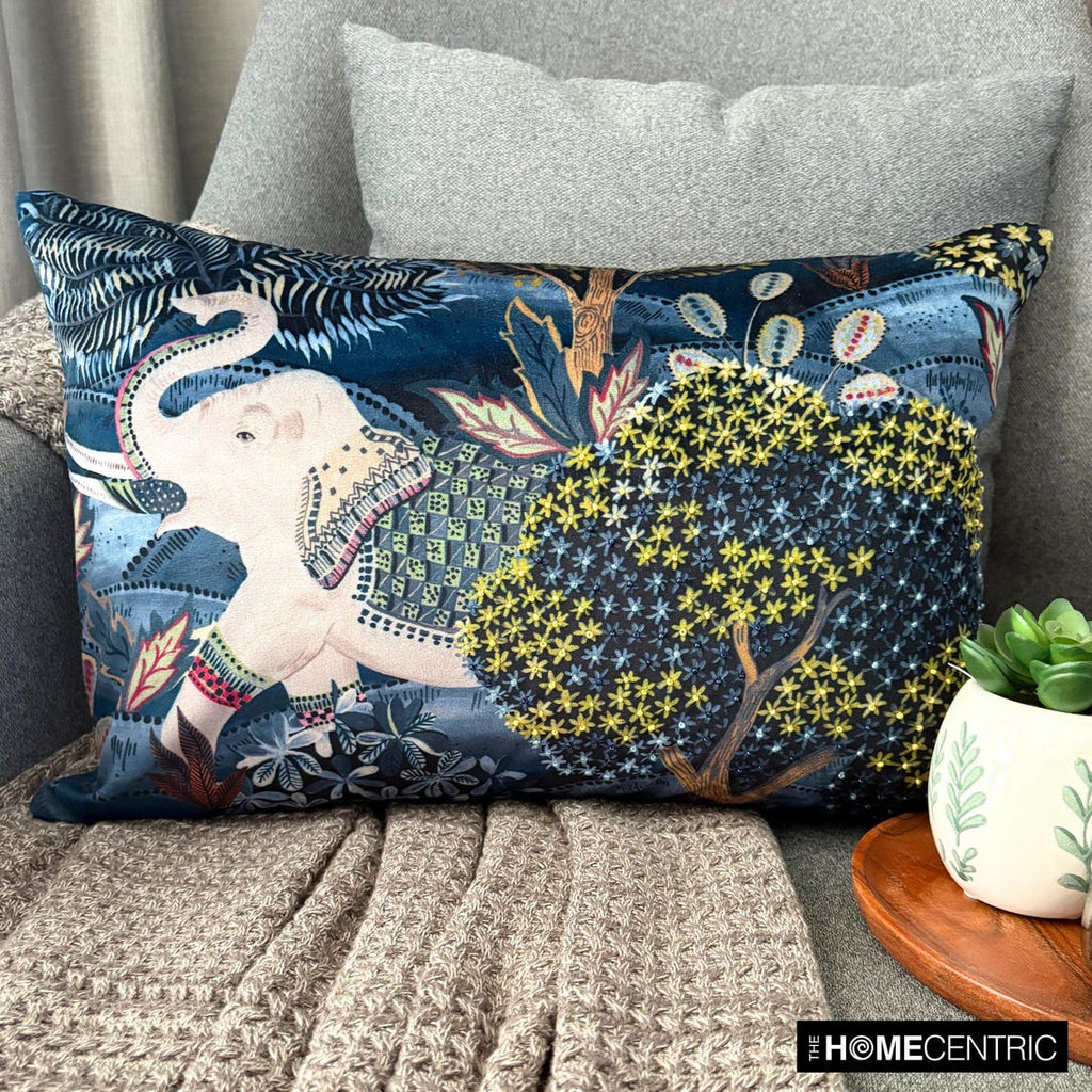 Trunk Of Comfort - Blue Velvet Lumbar Cushion Cover