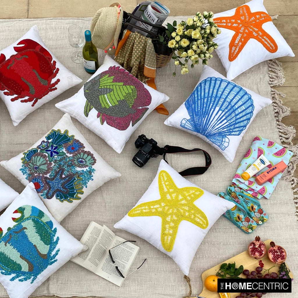 Oyster Bay is an exclusive 100% handmade decorative throw cushion cover designed and created with intrinsic detailing. A perfect item to decorate your living room, bedroom, office, couch, chair, sofa or bed.