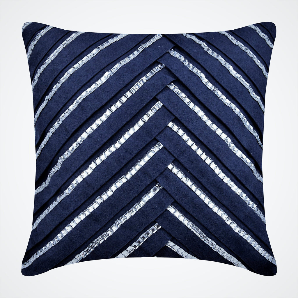 Fabric: Faux Suede Material Used: Crystals Fabric Color: Navy Blue Pattern: Striped Style: Modern Back of the cover: Plain Navy Blue Faux Suede Fabric For Insert Removal: Concealed flap covered zipper on the back for easy insertion and removal of inserts |