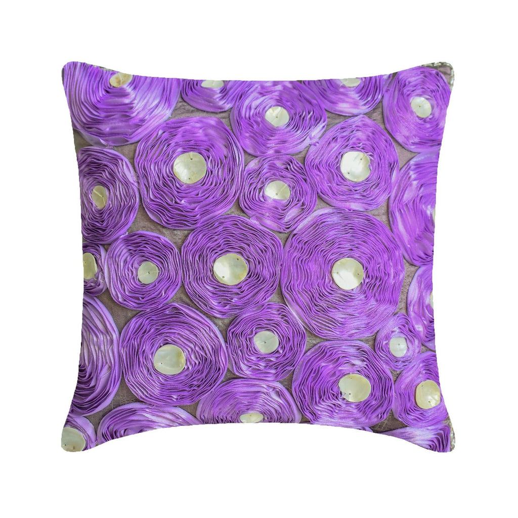 Lavender Roses is an exclusive, 100% handmade decorative silk euro sham design. Made with art silk fabric, these purple euro shams have an all-over floral design with the beautifully delicate flowers designed out of thin ribbon with a button at the center of each flower, giving this floral euro sham its chic look.