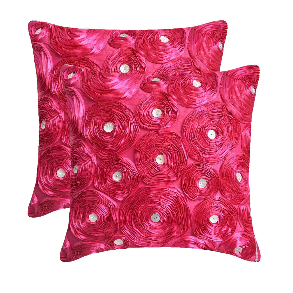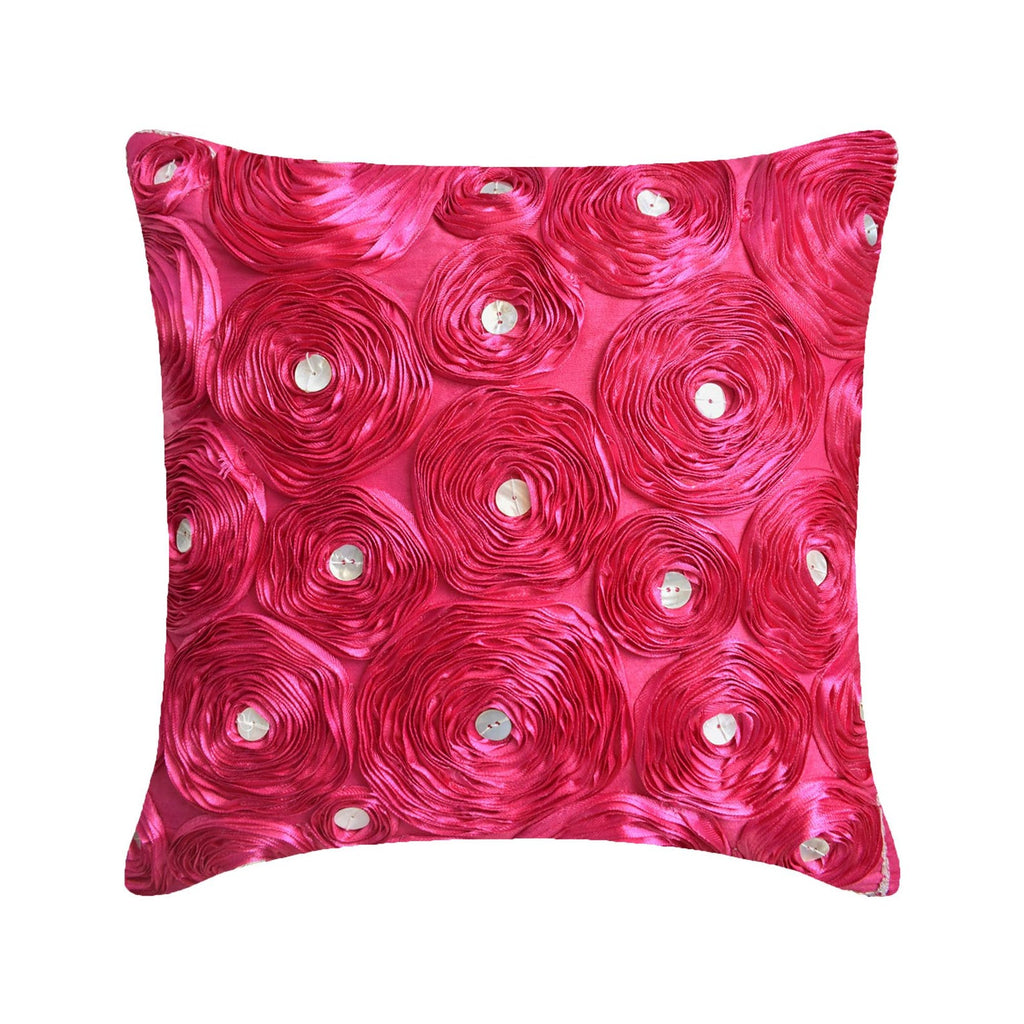 Fabric: Art Silk Material Used: Ribbon Fabric Color: Fuchsia Pink Pattern: Nature & Floral Style: Modern Back of the cover: Plain Pink Art Silk Fabric For Insert Removal: Concealed flap covered zipper on the back for easy insertion and removal of inserts |