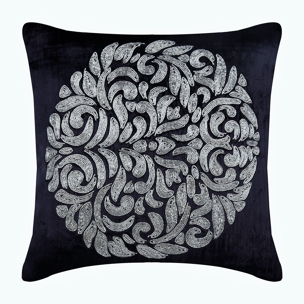 The Navy Turkish Dream beaded pillow cover has a hidden flap covered zipper for easy insertion and removal of inserts.