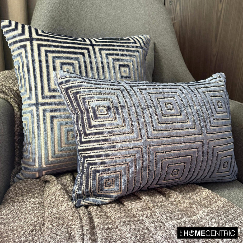 Twilight Illusion - Blue Velvet Throw Cushion Cover